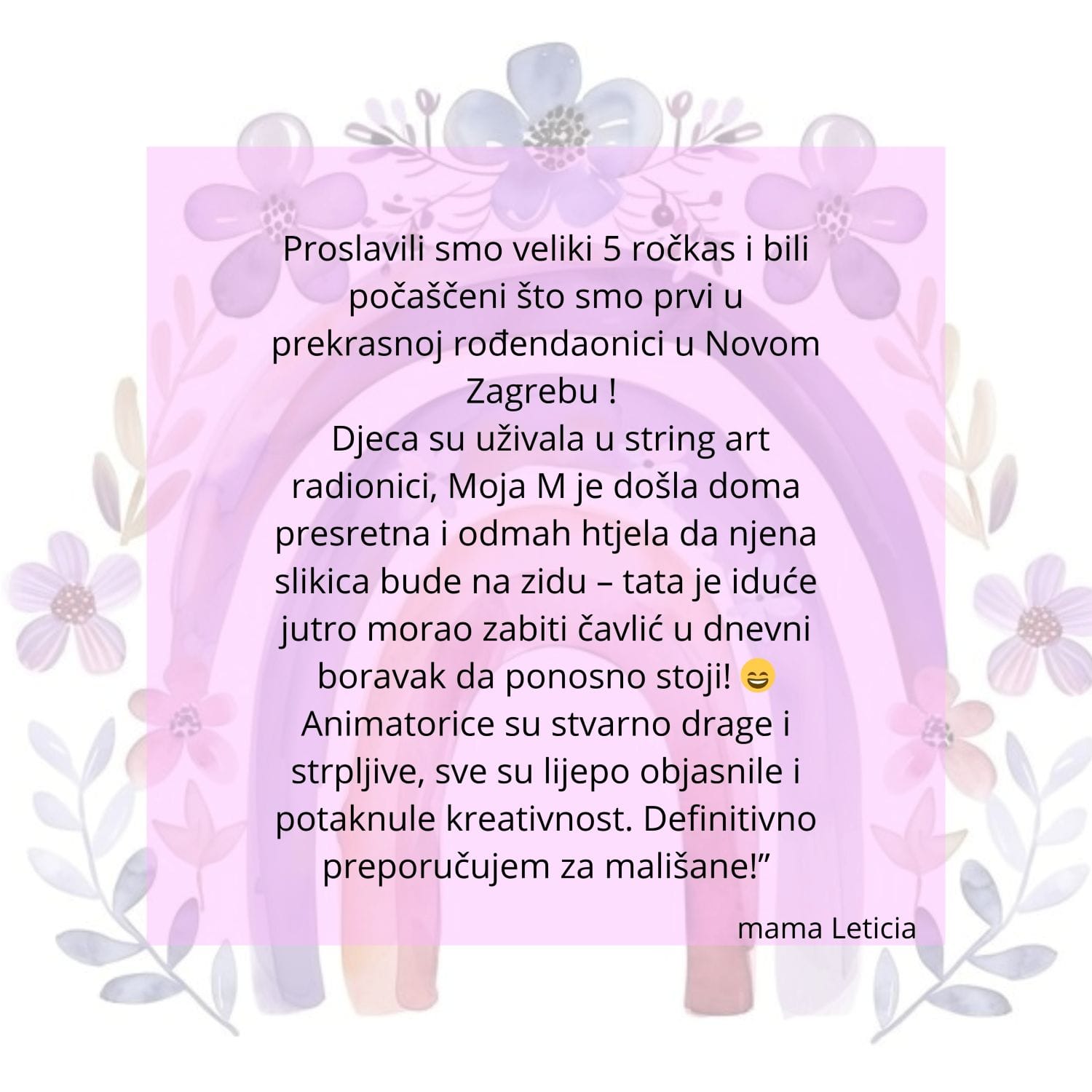 Mjesto gdje mašta postaje umjetnost, a kreativnost se slavi uz najšareniji rođendanski party! Djecu očekuje 2,5 sata stvaranja, igre i veselja uz stručnu podršku animatorica koje obožavaju male umjetnike.