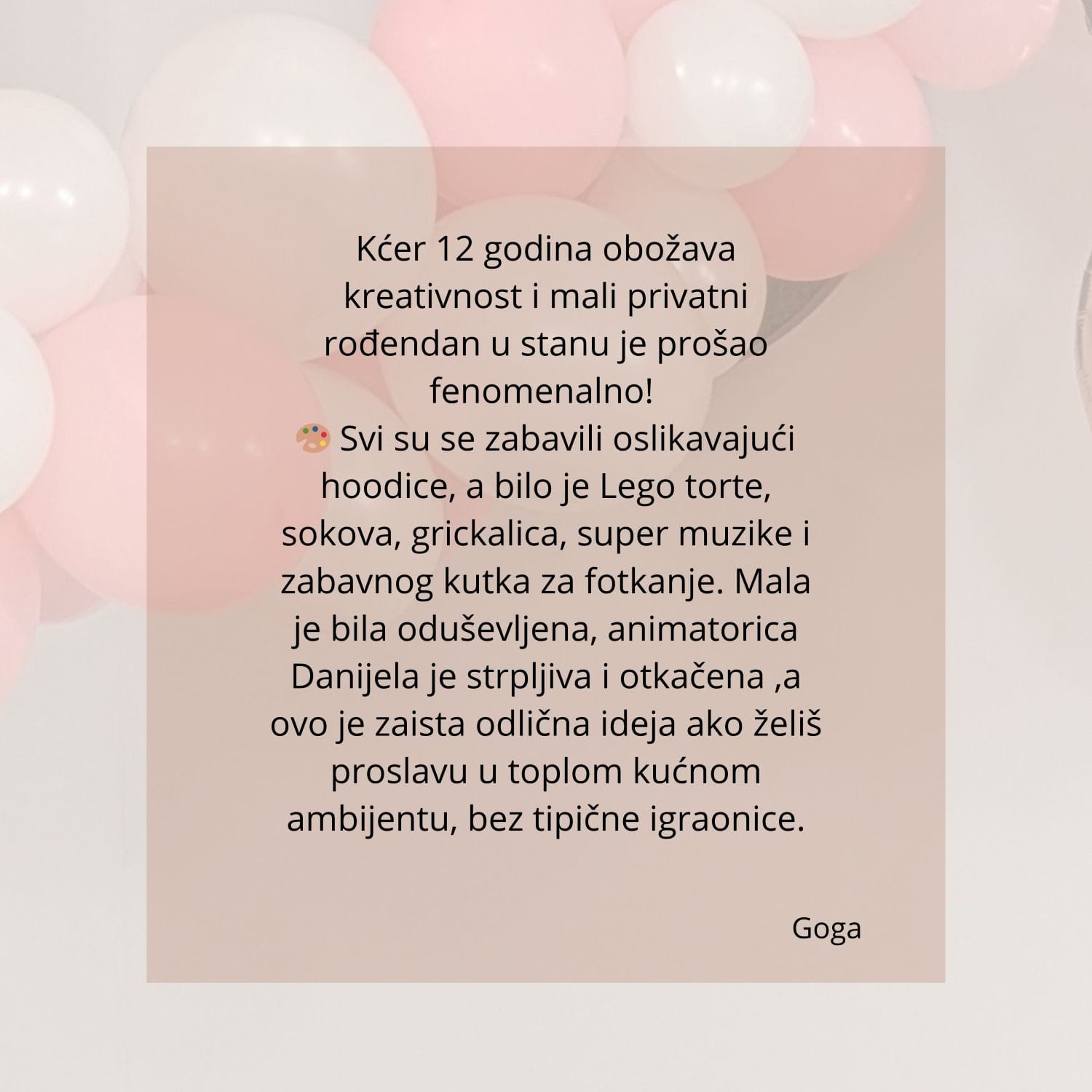 - Iskusne animatorice koje vode program i brinu da slavlje teče glatko i slatko